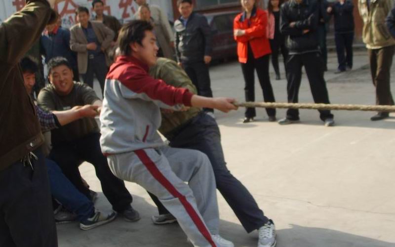 此次比賽共有4支隊伍參加,各小組代表以現(xiàn)場抽簽的方式進行角逐,實行淘汰晉級制。隨著裁判的一聲哨響,雙方隊員緊握長繩,腳蹬著地,身體向后傾,拼命向自己的方向拉。選手們的吶喊聲,啦啦隊的加油、助威聲,比賽現(xiàn)場氣氛高漲。經(jīng)過激烈的耐力、體力較量,金菱管業(yè)代表隊獲得冠軍,公司總部獲得亞軍。此次拔河比賽,不僅豐富了員工的業(yè)余生活,還加強員工之 間的團結(jié)合作精神,更是培養(yǎng)了員工們拼搏進取的精神和積極樂 觀的生活態(tài)度。