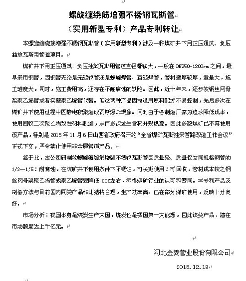 河北金菱管業(yè)股份有限公司又增新產(chǎn)品