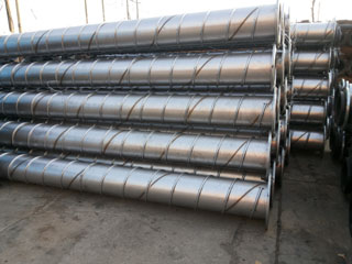 *以不銹鋼板帶經(jīng)螺旋卷制焊接成型為不銹鋼基管,同時在基管外表面螺旋敷設(shè)預(yù)制成型好的半圓不銹鋼加強(qiáng)筋,并經(jīng)焊接,成型為一體;
